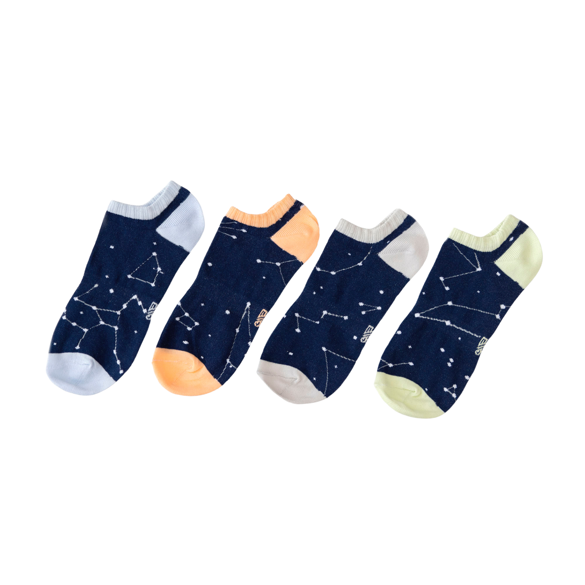 Calcetines bajos Constelaciones: este pack de 4 calcetines, diferentes y combinables entre sí, podrás combinar constelaciones cómo la Andrómeda, Casiopea, Hércules, Hydra, Orión y Pegaso. Aunque no se vean, se sienten.
